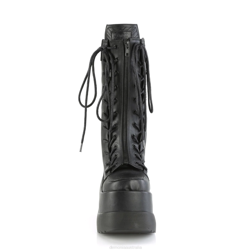 5inch (127mm) Wedge Tiered Platform Outside & Inside Lace-Up Mid-Calf Boot Featuring Coffin Shaped Tongue, Padded Collar & Center Zip Closure