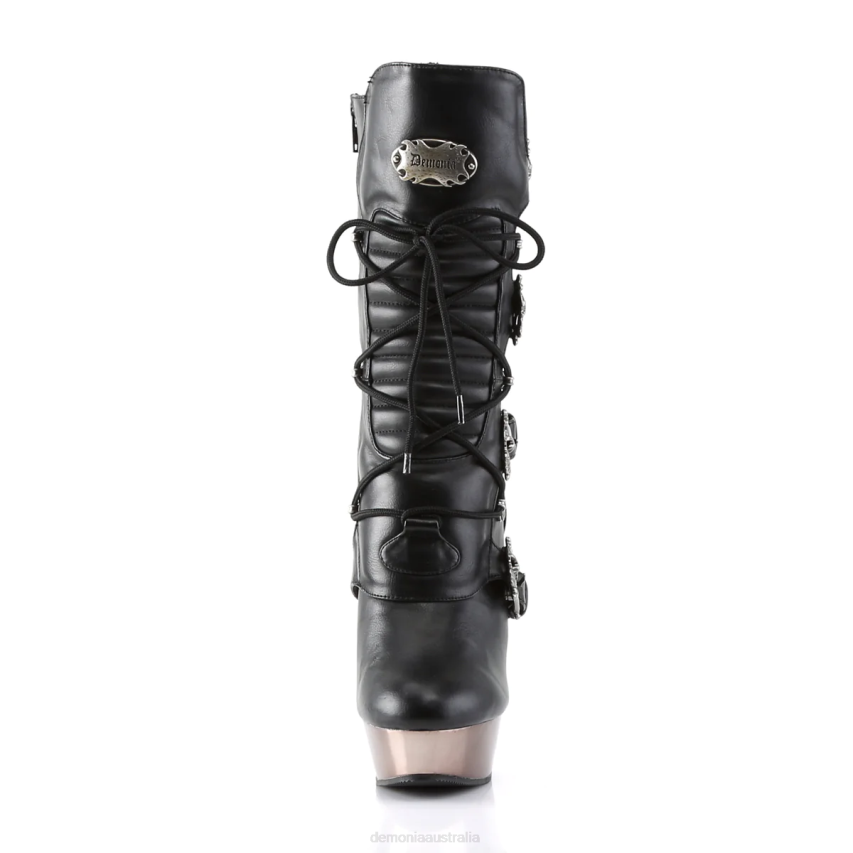 5 1/2inch (14cm) Finger Bone Heel, 1 1/2inch (38mm) Platform Lace Up Calf High Boot Featuring Skull Buckle Straps, Side Zip