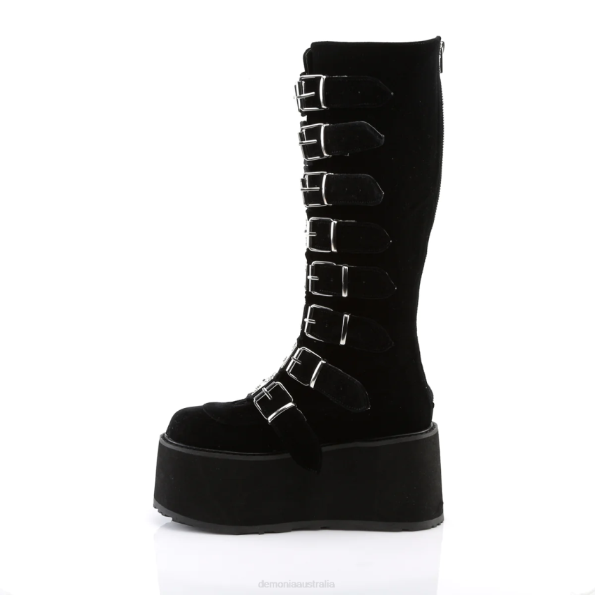 3 1/2inch (90mm) Platform Knee High Boot Featuring 8 Buckle Straps W/ Metal Plates At Center, Back Metal Zip Closure