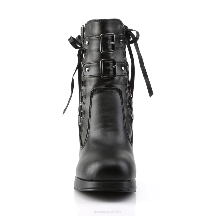 Embark On An Evening Of Intrigue In The Crypto-51 Ankle Boots, A Vegan Tribute To The Vampy Aesthetic. Articulated With A Robust 4inch Heel And A Practical 3/4inch Platform, They Elevate Your Style Effortlessly. Adorned With A Vivid Black And Red Lace Overlay And Three Statement Buckled Straps, These Boots Blend The Sultry With The Sophisticated. Featuring A Seamless Inner Side Zipper, The Crypto-51 Nails The Art Of Accessible Luxury With Its Daring Two-tone Design.