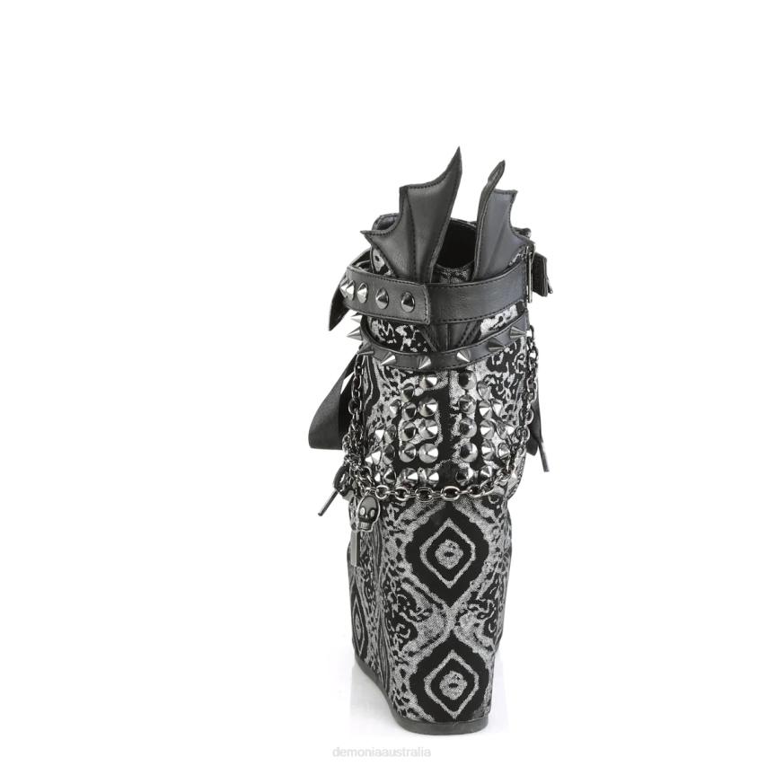 5inch (127mm) Wedge Platform Lace-Up Front Ankle Bootie Featuring Wrap Around Studded & Spike Straps W/ Bat Buckle Detail, Chain With Various Hanging Charms, & Batwing Detail Up The Back, Inside Metal Zi
