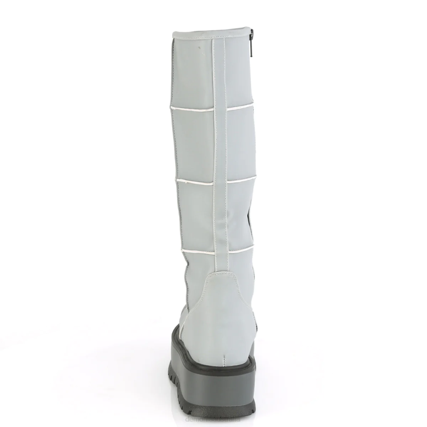 2inch (51mm) Platform Knee High Boot W/ Patching Details, Full Length Inside Metal Zip Closure