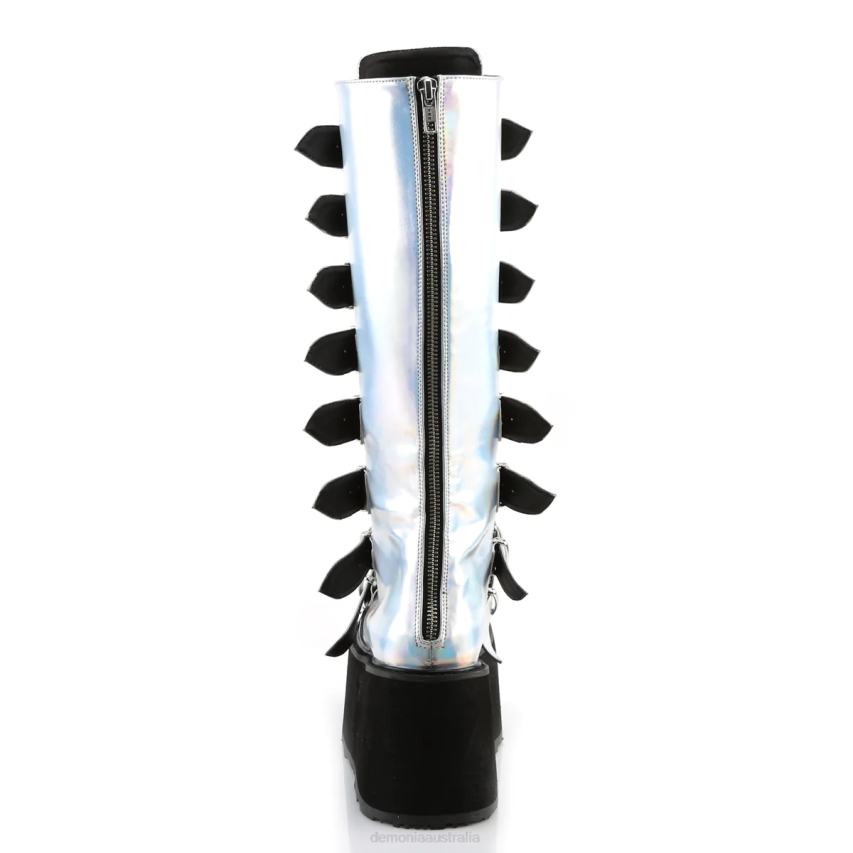 3 1/2inch (90mm) Platform Knee High Boot Featuring 8 Buckle Straps W/ Metal Plates At Center, Back Metal Zip Closure