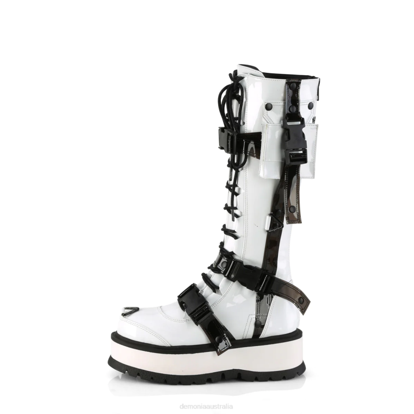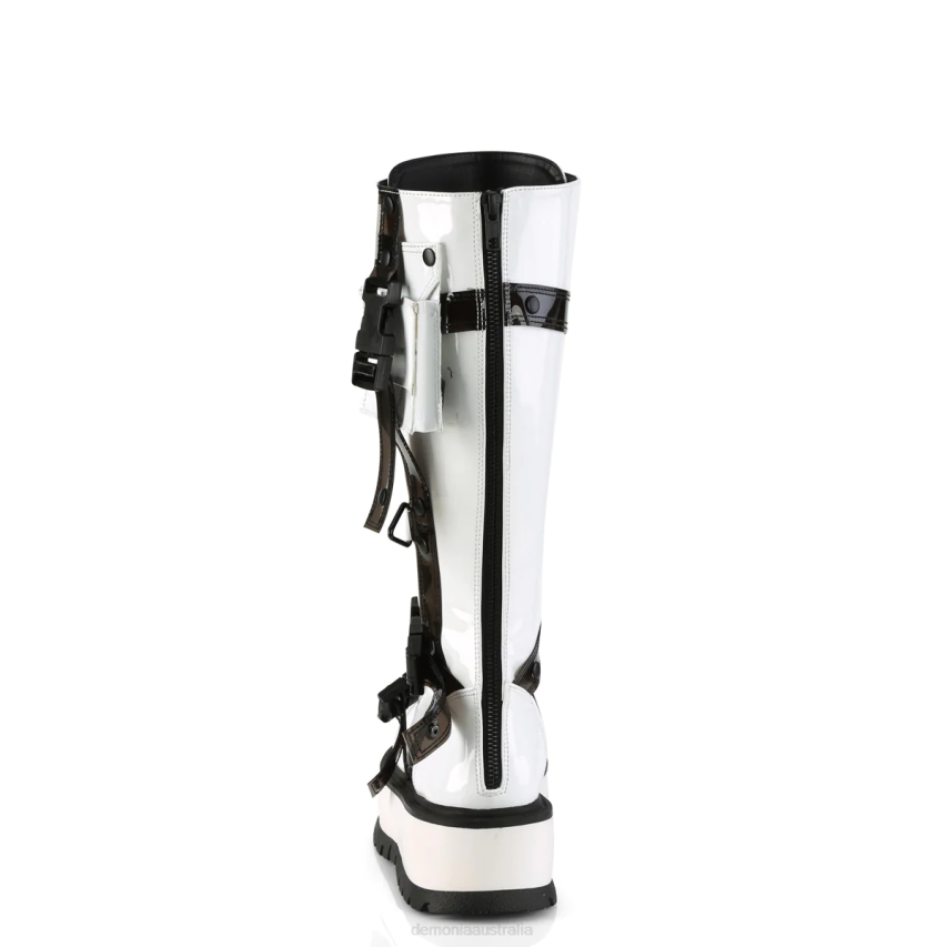2inch (51mm) Platform Lace-Up Front Knee High Boot Featuring Cargo Side Pocket, Quick Release Plastic Buckle Straps And Studding & Triangle Ring Details, Full Back Metal Zip Closure