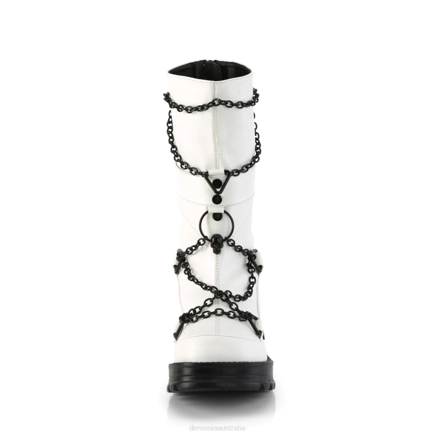 2 3/4inch (70mm) Chunky Heel, 1inch (25mm) Platform Mid-Calf Boot, Featuring Pyramid Ring, Screw Studs, Hanging Skull O-Ring And Metal Chain Detailing On The Vamp, Back Metal Zip Closure