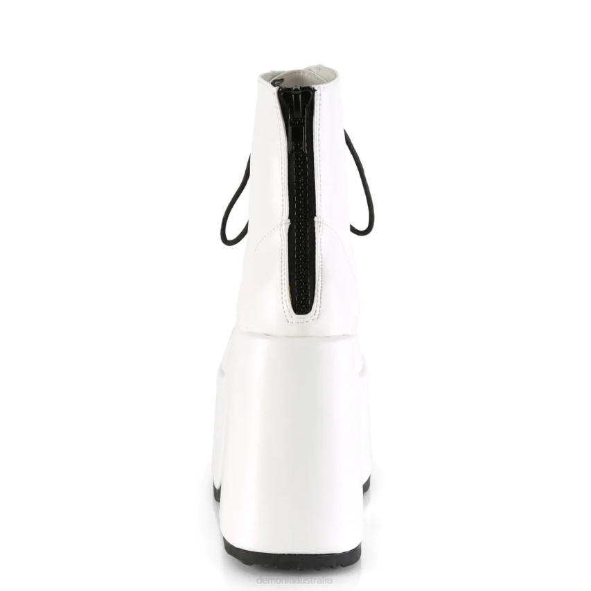 The Camel-203 Ankle Boots Redefine Bold Style With A Touch Of White-hot Flair. These Vegan-friendly Powerhouses Pair A Commanding 5inch Chunky Heel With A Robust 3inch Platform, Guaranteeing You'll Rise Above The Crowd. Lacing Up For A Custom Fit And Zipping Up For Quick Access, These Boots Are The Epitome Of Both Practicality And Edgy Aesthetics. Whether You're A Moonlight Raver Or A Daytime Rebel, These Boots Are Your Perfect Accomplice.
